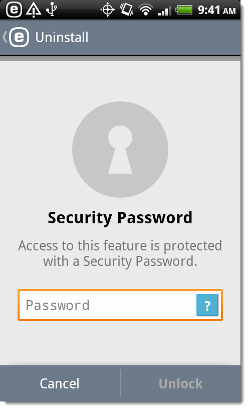 - Neviete si spomenúť na heslo nastavené v sekcii ESET Mobile Security → Nastavenia → Bezpečnostné heslo.
