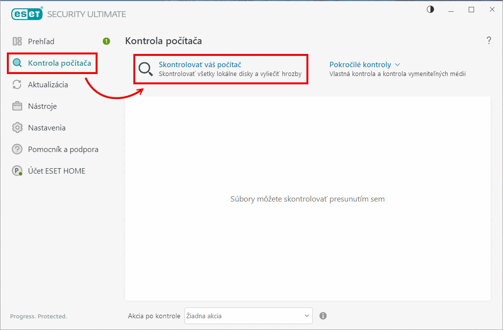 Kliknite na položku Kontrola počítača → Skontrolovať váš počítač.