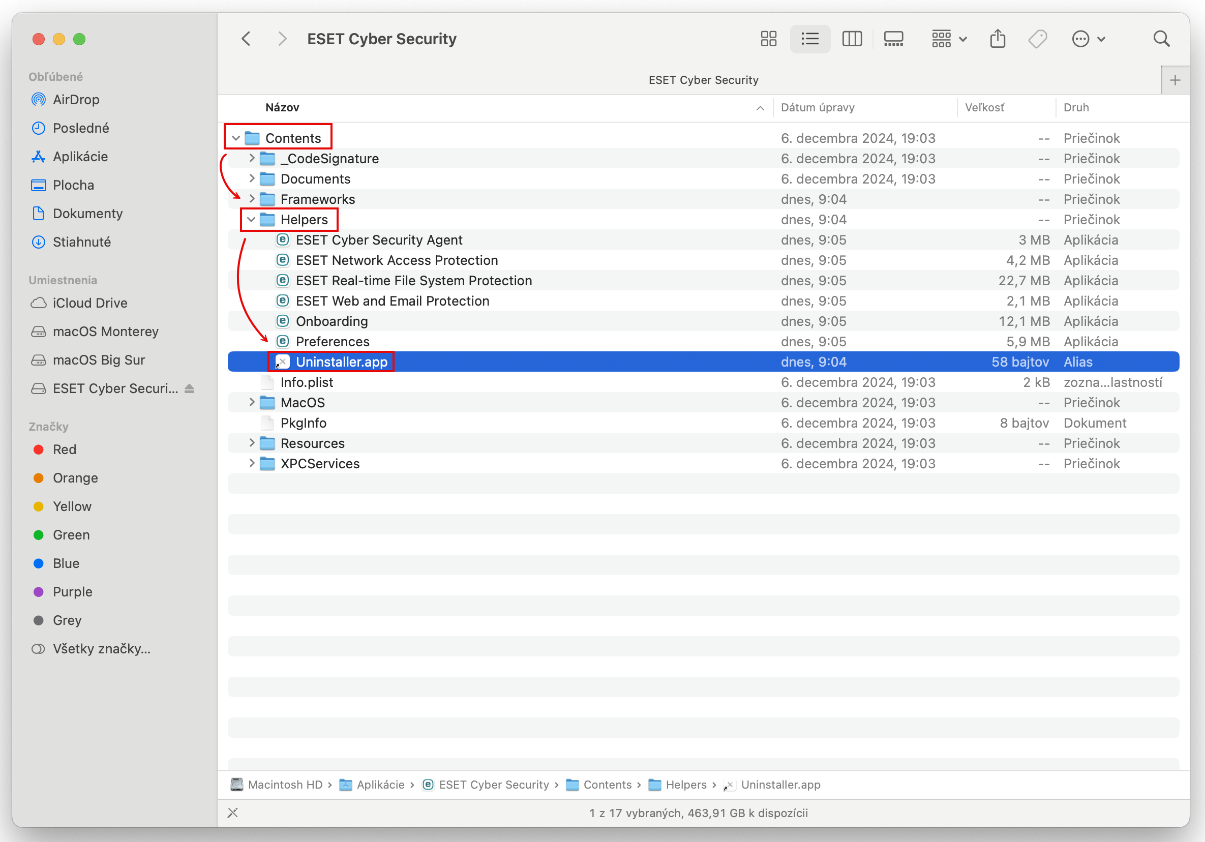 Rozbaľte položku Contents → Helpers a potom dvakrát kliknite na Uninstaller.app.