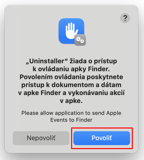 Kliknutím na Povoliť udeľte odinštalátoru potrebné oprávnenia na dokončenie odinštalovania.
