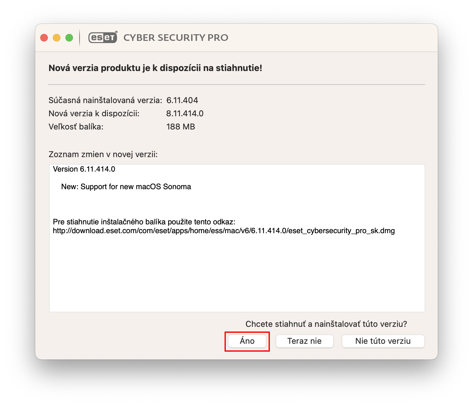 Podľa pokynov na obrazovke nainštalujte najnovšiu verziu produktu ESET.