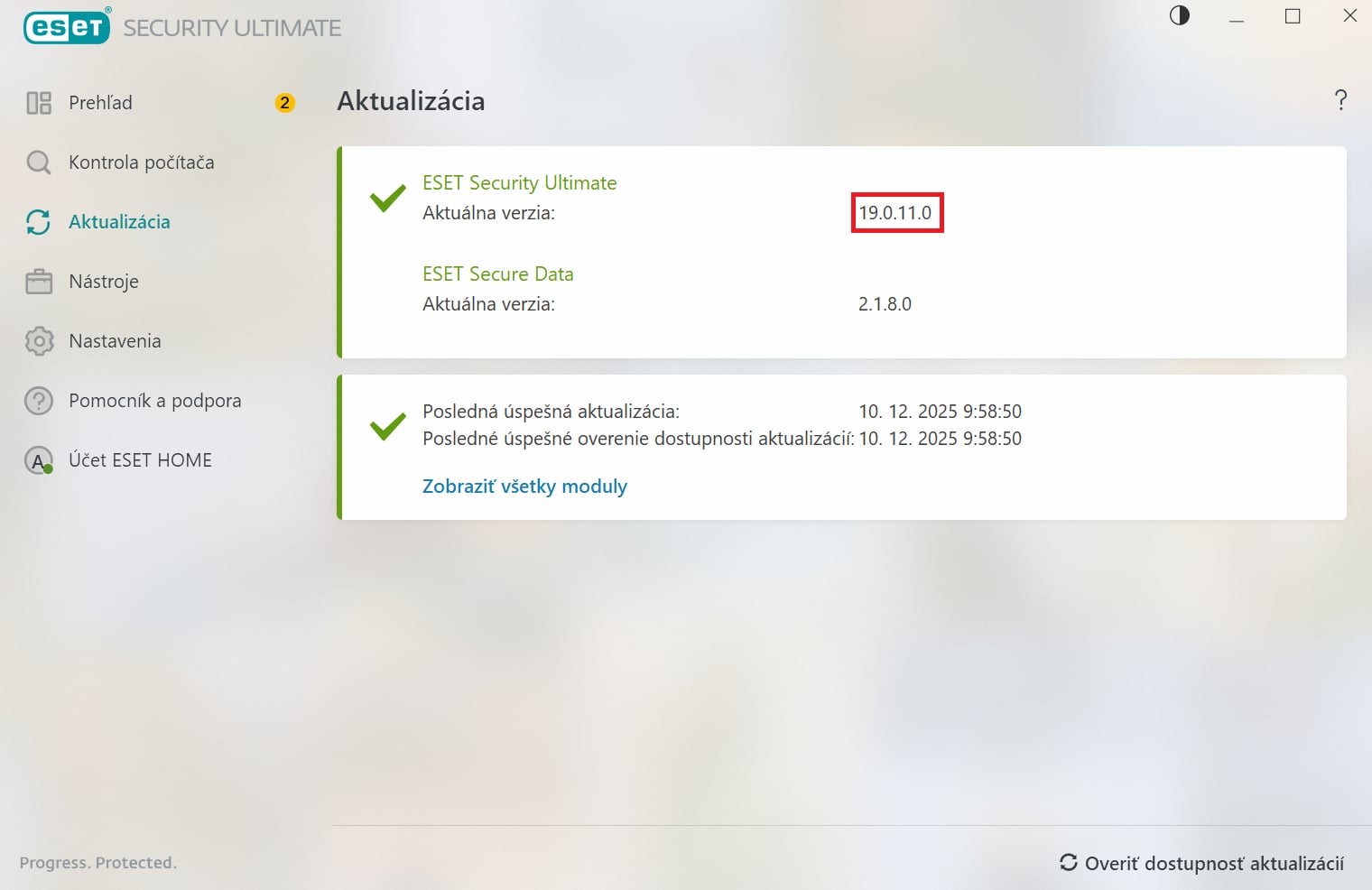 - Overte si, či používate najnovšiu verziu aplikácie ESET pre Windows určenú pre domácnosti alebo malé firmy