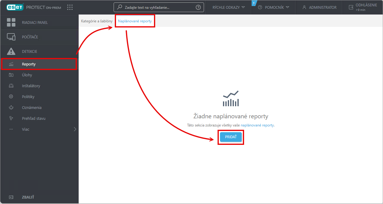 - Kliknite na Reporty → Naplánované reporty → Pridať.