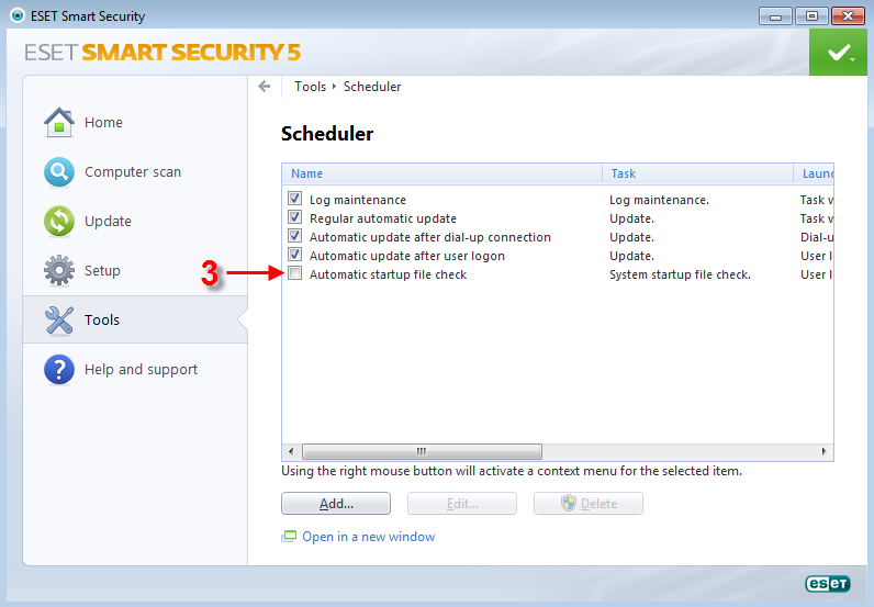 Varsayılan olarak, ESET güvenlik ürünleri bilgisayar başlangıcında uygulamaları ve sistem belleğinizi tarar. Başlangıç taraması normalden uzun sürüyorsa geçici olarak başlangıç taramasını kapatabilirsiniz. Taramayı kapatmak için aşağıdaki adımları takip edin:
